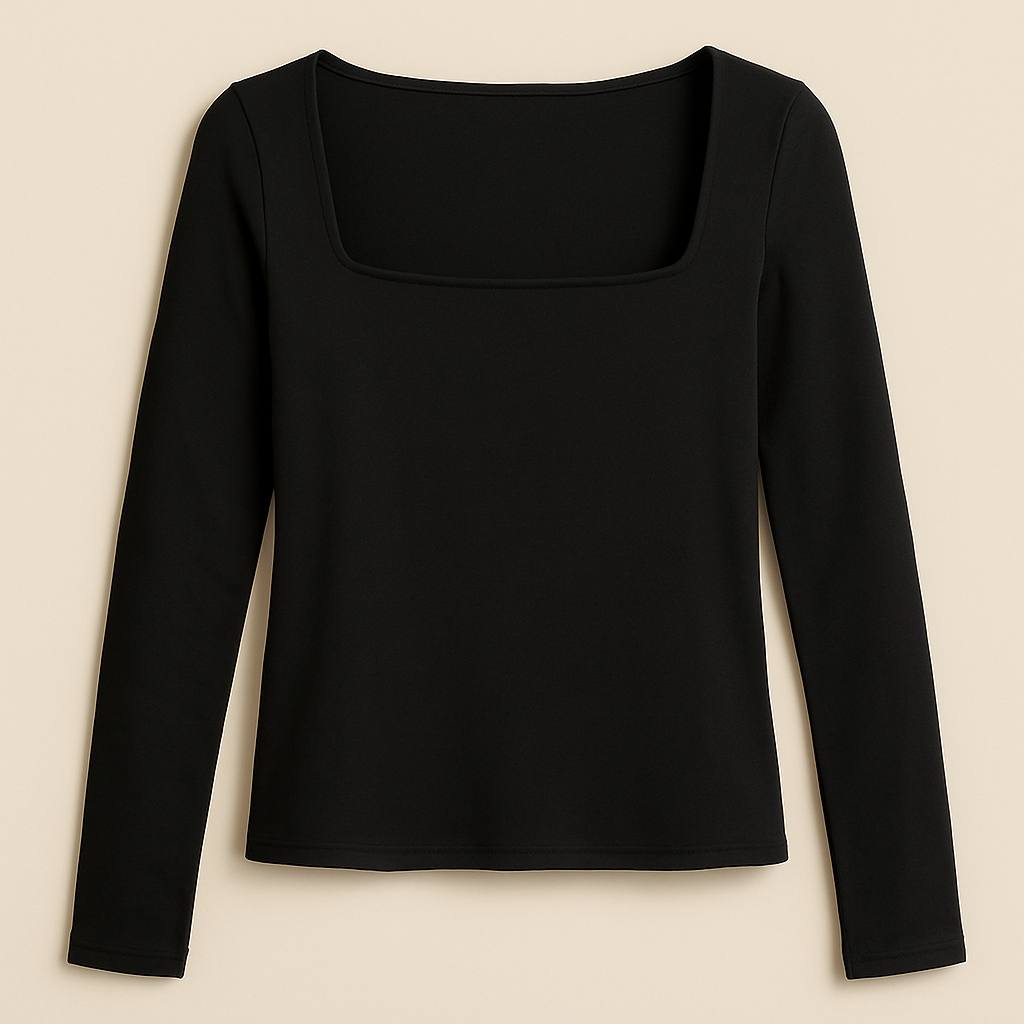 Blusa con cuello cuadrado Blenca, de estilo moderno y versátil. Ideal para combinar en outfits casuales o elegantes, con un corte favorecedor y cómodo.
