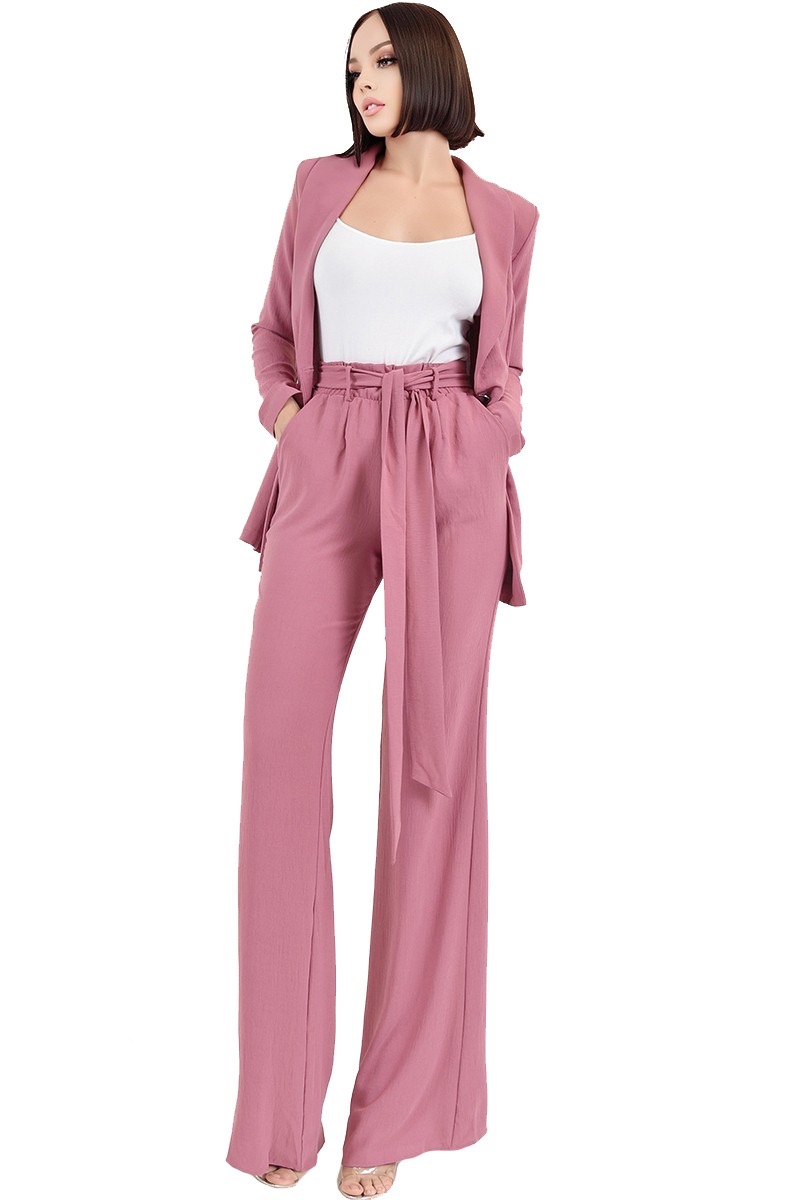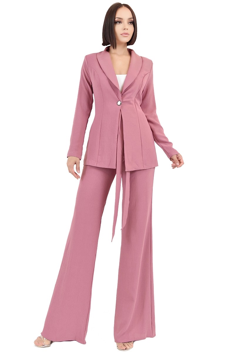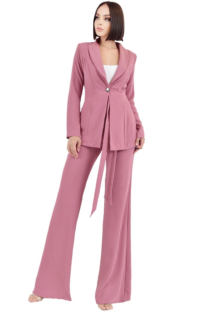 Conjunto elegante de blazer con un botón y pantalón palazzo. Cómodo, moderno y perfecto para lucir sofisticada en cualquier ocasión.