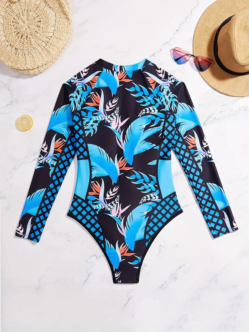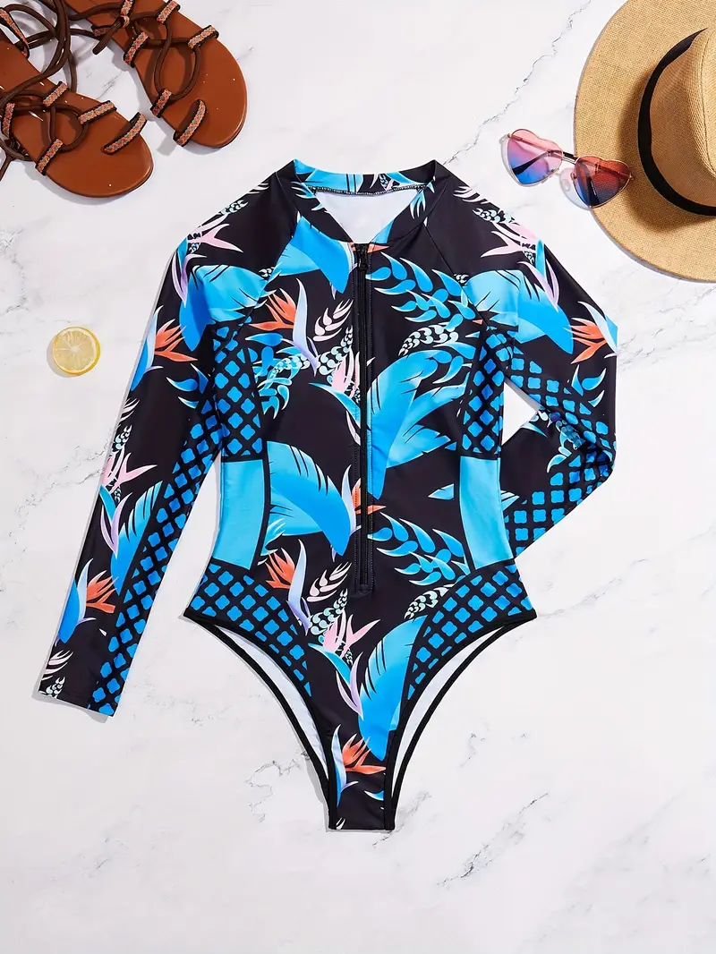 Este elegante traje de baño de una pieza para mujer presenta mangas largas y un moderno cierre de cremallera en la parte delantera. Con un estampado aleatorio único y acolchado removible en el pecho, ofrece tanto estilo como comodidad. Su tela de alta elasticidad y forro de spandex garantizan un ajuste perfecto, mientras que es lavable a máquina para mayor facilidad. Ideal para tus días de playa o piscina, este bodysuit combina sofisticación y funcionalidad en un solo diseño.