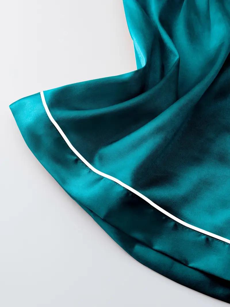 Este conjunto de pijama casual de satén sólido para mujer está diseñado para brindar comodidad y estilo tanto para descansar como para dormir. Confeccionado con una mezcla de 95% poliéster y 5% elastano, este conjunto ofrece una sensación suave y ligera sobre la piel, permitiendo una libertad de movimiento sin comprometer la suavidad o la durabilidad del material. El poliéster asegura que el conjunto mantenga su forma y color después de varios usos y lavados, mientras que el elastano proporciona una ligera elasticidad para mayor confort.